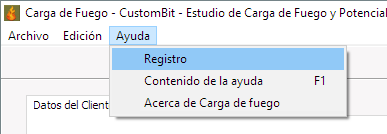Para registrar el programa es necesario escribir el Nombre de Usuario y la Clave de Licencia en la ventana de Registro, a la que se accede desde la opción Ayuda >> Registro del menú principal: